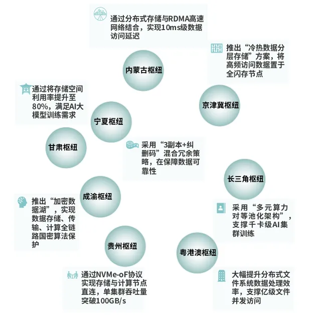 2024年 ,“东数西算”枢纽节点智算中心作为新型基础设施的核心载体 ,推动分布式存储技术向高性能 、绿色化方向升级 。东部枢纽节点探索架构创新路径, 面向海量 AI训练需求 ,推动存算分离趋势深化。西部枢纽节点加快突破分布式存储性能瓶颈,实现了针对AI训练的小文件高速随机读写。除此之外 ,智算中心在推动分布式存储安全与可靠性升级上也发挥了重要作用 ,部分零信任架构已融入分布式存储系统,保障存储设备拓展安全可行。