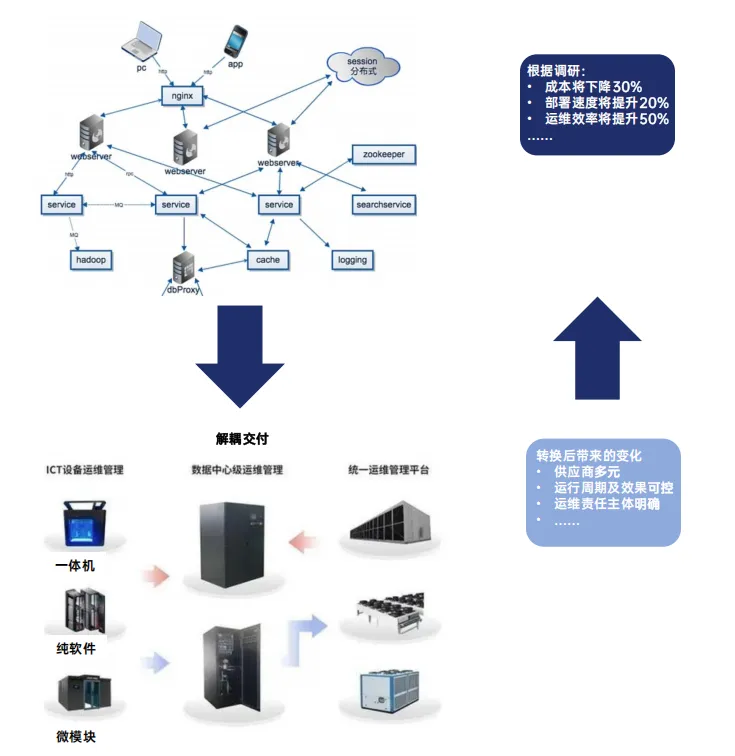 分布式存储的发展依赖多类型厂家的适配 ,促进合理分工 。以智算中心为例 ,现在多为微模块一体化交付 ,成本偏高 ,且分包主体容易相互推诿扯皮 ,运维效率偏低 。若采用解耦交付方式, 即一体机与纯软件之间遵循统一的规范实现解耦 ,可由不同厂商交付 ,用户按照类似集采的方式 ,按需配置不同规格的分布式存储产品 ,更有利于实现多厂家适配 ,易于推广 ,能够实现灵活部署 ,降低成本。