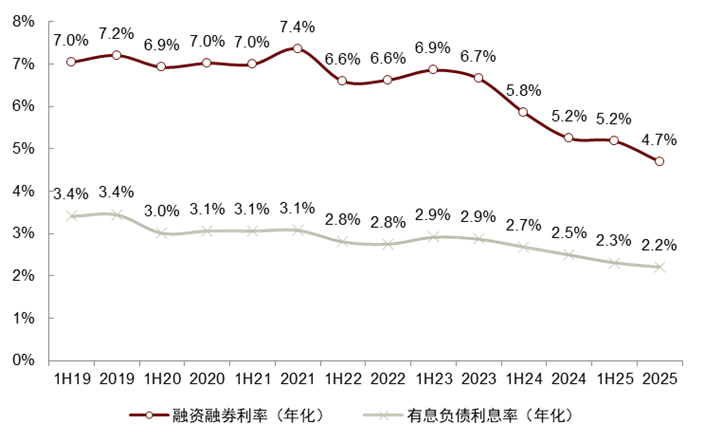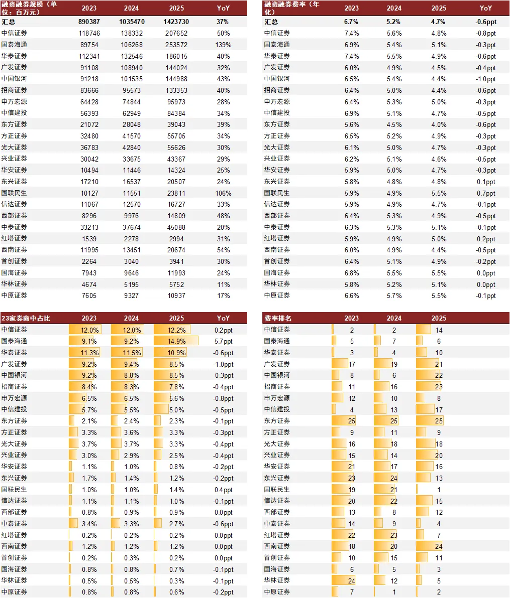 注:汇总未纳入国泰海通、国联民生 2025年国泰海通费率受期初两融规模未并表影响,或偏高