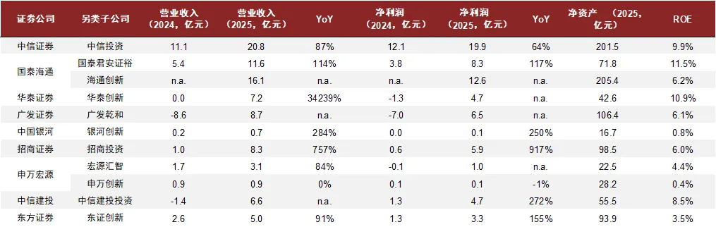 围绕服务新质生产力、投行与股权投资业务回暖,三投联动的重要性提升。1)2025年服务新质生产力带动投行回暖,IPO发行项目中电子、汽车、公用事业、电力设备、医药生物行业融资规模占比分别达到27%、17%、14%、9%、7%。同比高增的同时、投行业务增速显著分化,头部公司凭借更强的平台资源和专业能力抢抓新质生产力服务风口,增速快于行业整体。2)同时,重点聚焦新兴科技行业股权投资、部分头部机构的私募子公司及另类子公司盈利显著修复、ROE水平较高,我们认为业绩分化的关键在于主动管理能力:对于私募子公司,基于主动管理规模实现的投资收益(包括自有资金跟投收益以及收取的业绩报酬)对盈利贡献更大,而基于管理总规模带来的手续费收入相对弹性较小;另类子公司的盈利增速也取决于选取项目的能力。3)围绕服务好新质生产力和提升主动管理能力,投行和投资业务对于针对新兴科技行业的研究能力提出更高要求,协同联动有助于打破对高新科技行业更高的认知壁垒。我们认为,具有特定区域资源、差异化布局的券商有望于此破局,形成特色发展路径。
