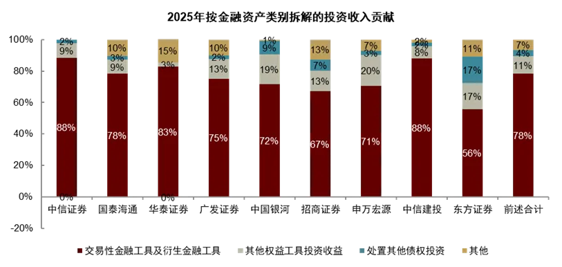 #2 盈利普涨或将走向分化、龙头优势有望凸显。2025年自营与经纪业务驱动增长下,行业实现普遍高增。我们预计2026年行业业绩或将从普涨走向分化,受股基成交额和佣金率基数影响,经纪业务对业绩增速的贡献或将下降;市场震荡行情中,投资收入增速也将面临分化。头部券商得益于更稳健的自营业务、优势更突出的投行和资管业务,业绩增速或将更具优势。