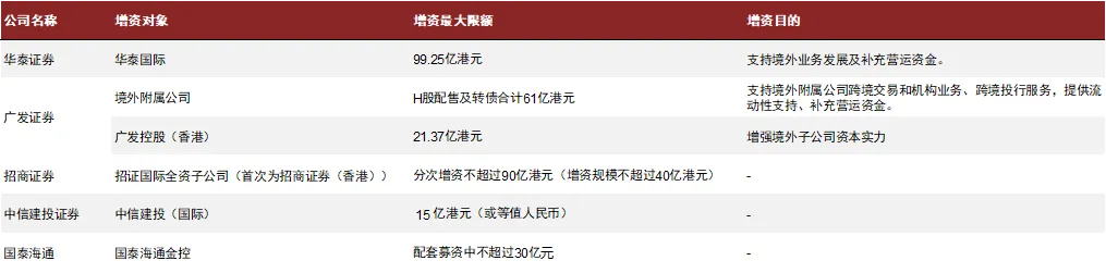 图表31:为满足用资需求,头部券商增资国际子公司案例频发