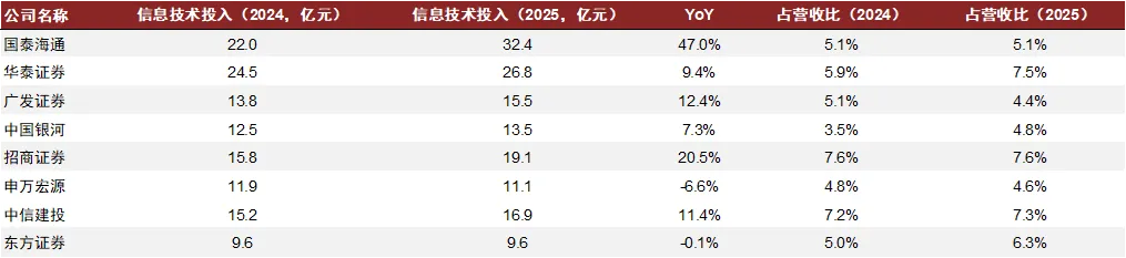图表33:多数头部券商提升了信息技术投入及比重