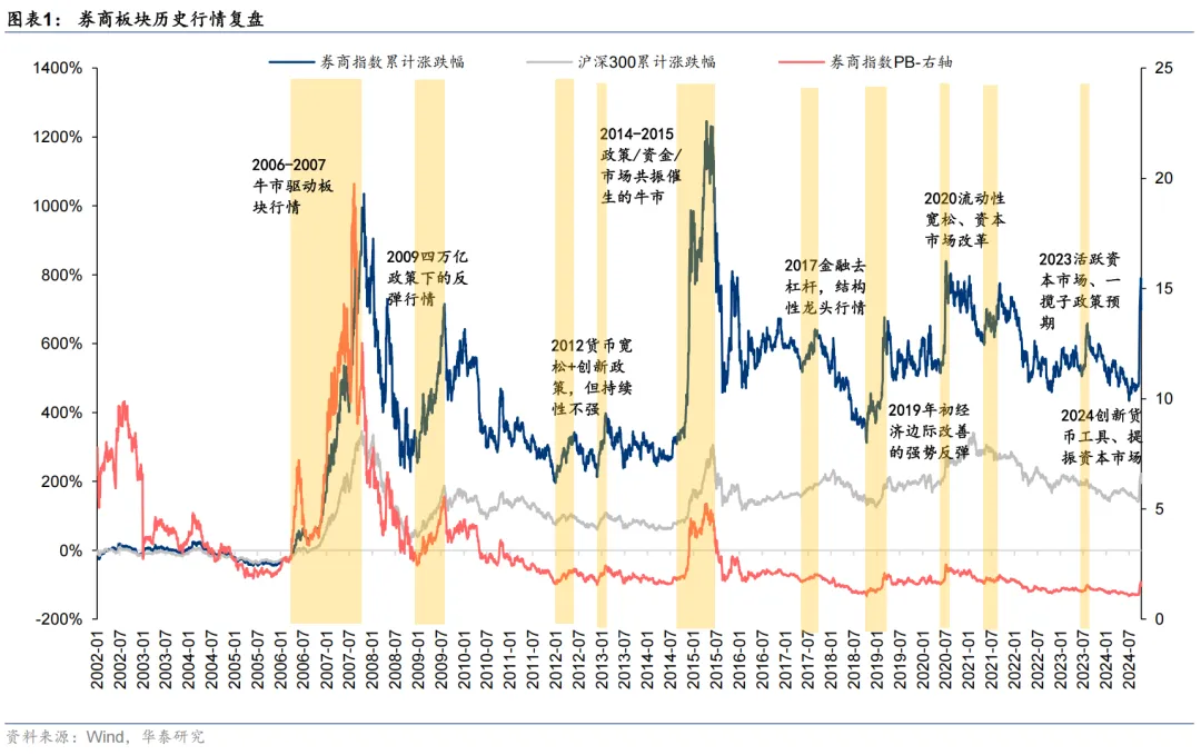 2005-2007年,PB估值中枢3-5倍,ROE 15%+,本质是股权分置改革制度红利叠加盈利爆发的三重共振:政策宽松→市场上涨→成交量放大→券商盈利改善→估值修复→更多资金入场→市场继续上涨。行情走到2007年10月,很多券商PB已经到了5倍以上。