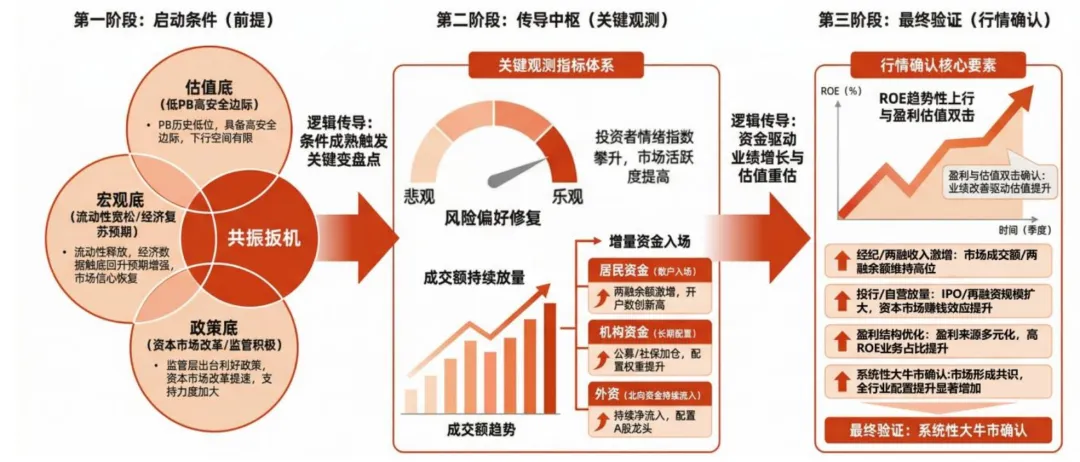 一个更本质的判断标准是:市场能不能形成赚钱效应。赚钱效应是吸引增量资金持续入场的根本原因。只要市场有赚钱效应,新的资金就会源源不断地进来,推动成交量放大、融资增加、基金销售火爆——这个正反馈一旦形成,券商的每一项业务都会受益。