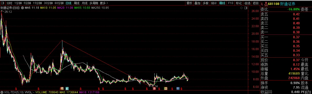 再论券商反转之路2024年9月23日,曾经发过一篇文章《券商反转之路》,当时在券商板块带领之下确实走出了一波行情,之后完成了券商指数689到1243点的反转,指数差不多翻倍了。后经历了11月8日以后的调整,到上周五的反弹,这一次出现了一些不一样的味道,一年半的调整之路,大盘指数都差不多1000点的涨幅,券商还回杀到了926点。这是券商的日线图,这里可以看到一个上涨中枢的轮廓了,我觉得可以大胆的去猜测这里券商的反转了,结合当下指数的位置,全市场中,券商的性价比再次凸显了。那么接下来就是需要关注其连续性,一旦连续性走出来,可以大胆的去建仓了。我们有理由相信1243肯定不是高点。上述大盘5F和1F的走势结构显示这里还是值得去期待的,不要轻易的就说这里已经结束了,我还是继续看好中线走势,换句话就是这个5F走势类型还没有结束。我们老觉得自己能够把资金的利用率达到最大化,这就是我们无法空仓的根本原因,当选好一只票,按照操作级别进去了,也按照操作级别出来了,赚了钱了,就膨胀了,觉得我们可以找到另外一只票,又去赚钱了,一刻都不愿意停下来。殊不知事与愿违,再次进去的时候套起了,初始的票跌回来给了又一次机会,但是没有资金了,后悔了,说下一次一定要改变了,然而之后,又是一个下一次的轮回,这就是我们人性贪婪的原因,失去了操作节奏,结果一而再再而三的瞎操作,最后把自己完全搞崩溃。至于谁能走出来,只有交给时间去验证了,但是按照有结构的思维去操作,肯定也不会差的,希望这一轮真的是券商带领指数突破4200点。