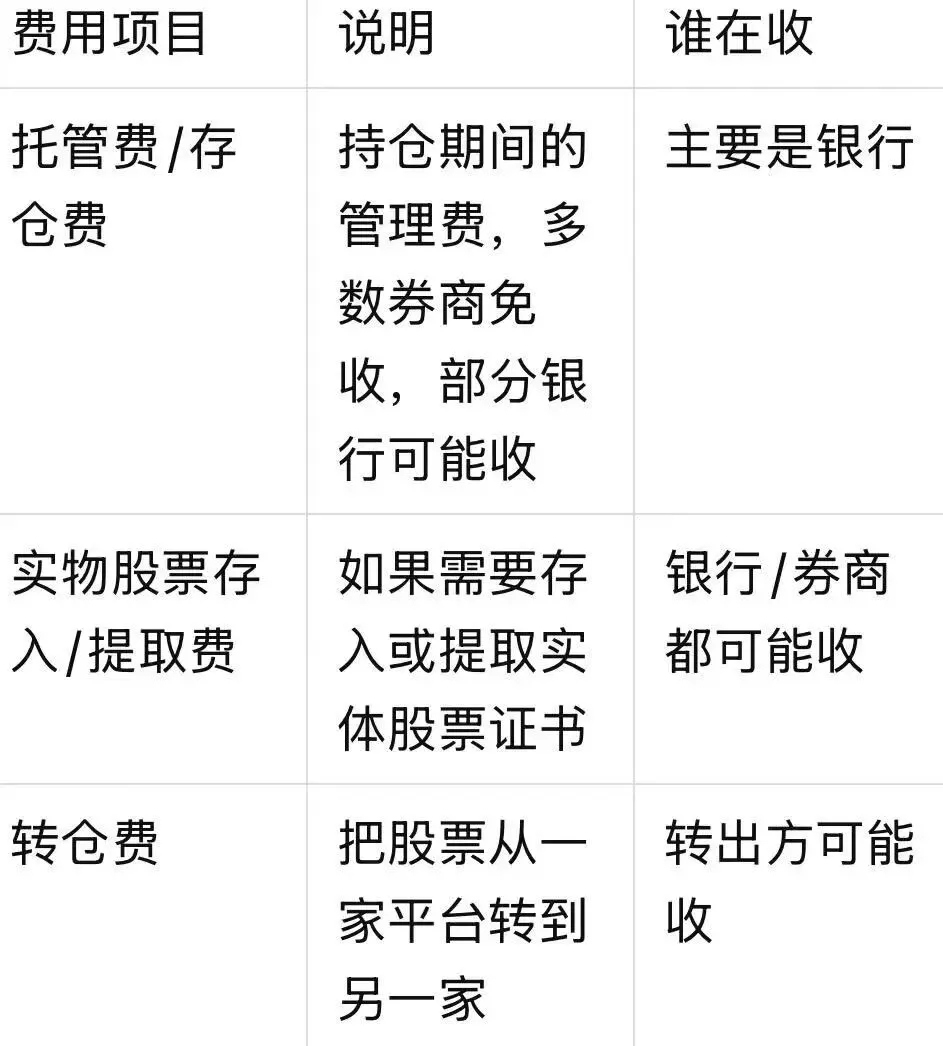 (1)银行和券商平台都收的费用(政府/监管费)