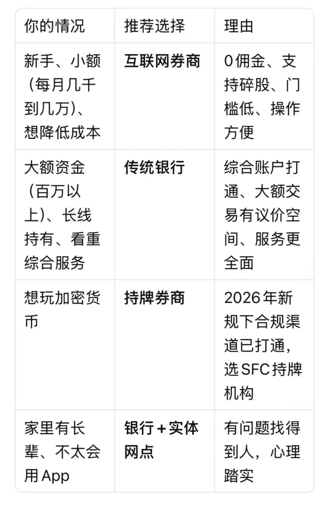 ·互联网券商:一切在线,客服电话可能排队。对于老一辈投资者,"看得见的柜台"本身就是一种安全感。