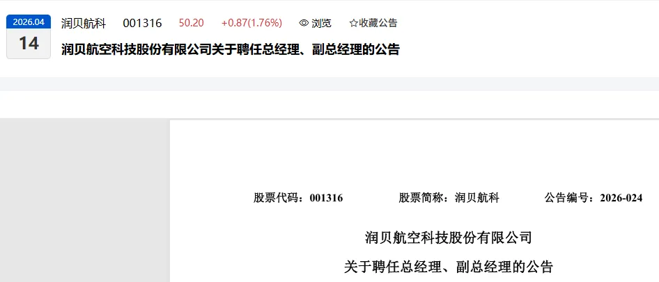 润贝航空科技股份有限公司(以下简称“润贝航科”)董事会于近日收到公司董事长、总经理刘俊锋先生关于辞任公司总经理的书面辞职报告。根据《中华人民共和国公司法》《公司章程》《深圳证券交易所上市公司自律监管指引第1号——主板上市公司规范运作》的相关规定,刘俊锋先生的辞职报告自送达公司董事会之日起生效。刘俊锋先生辞任公司总经理后,仍在公司担任董事长。