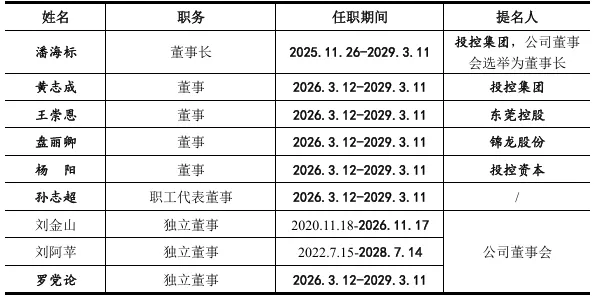 2025年,东莞证券迎来重大治理变革,股权结构与董事会架构均完成优化,为公司十年IPO长跑注入新动力。股权方面,2025年6月,锦龙股份将所持20%股权转让给东莞国资联合体,后者持股比例从55.4%提升至75.4%,东莞市国资委正式取得公司绝对控制权。治理层面,2026年3月,公司完成新一轮董事会换届选举,新一届董事会由9名董事组成,其中4名由东莞国资联合体提名,东莞国资主导的治理格局进一步夯实。