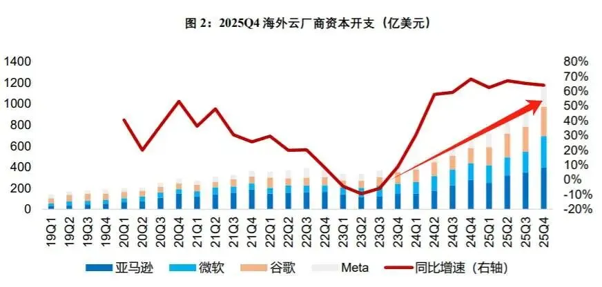 从下面这张图可以发现,海外云计算大厂资本投入2025年呈现逐季增加趋势——这一点和中际旭创2025年营收逐季增加高度一致。而且,2025年中际旭创境外收入高达346.37亿元,收入占比超过90%,这也是高度一致的。