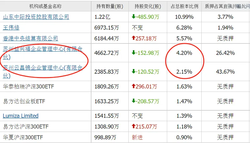 刘圣控制的苏州益兴福企业管理中心(有限合伙)与苏州云昌锦企业管理中心(有限合伙)持股比例分别为4.2%和2.15%,合计6.35%(刘圣个人持股极低)。按照今天收盘市值计算,持股市值为550亿元。