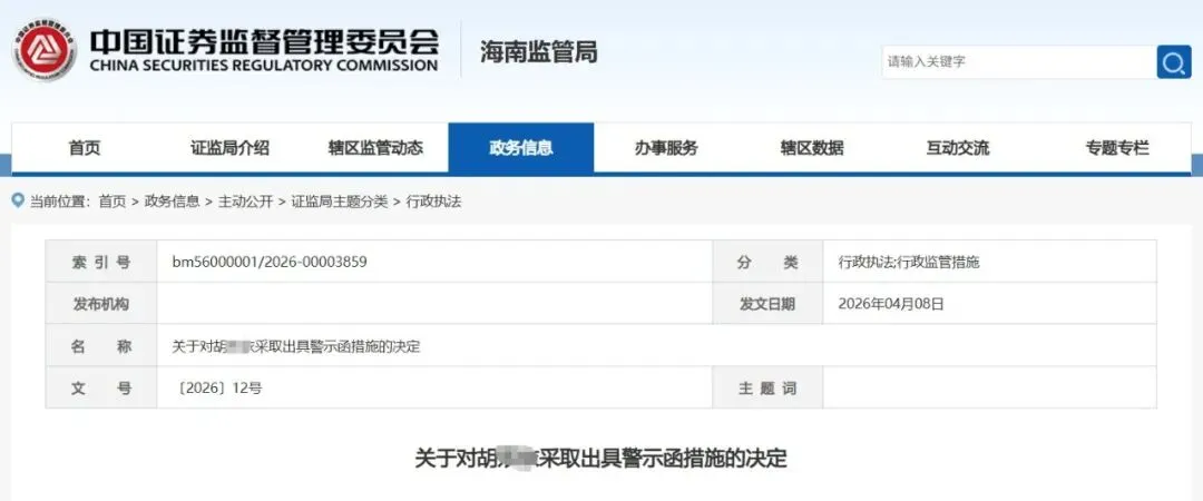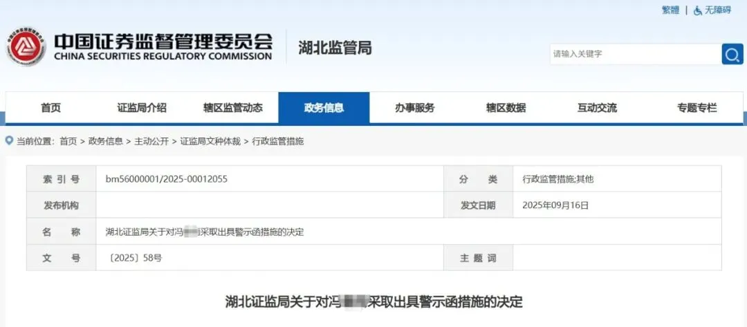 湖北证监局此前也有倒查接近10年的案例。2025年9月,湖北证监局发布了关于对冯某采取出具警示函措施的决定。