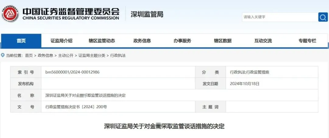证券时报·券商中国记者注意到,此前深圳证监局也有倒查10年采取监管措施的案例。2024年10月,深圳证监局对金某采取监管谈话措施的决定。