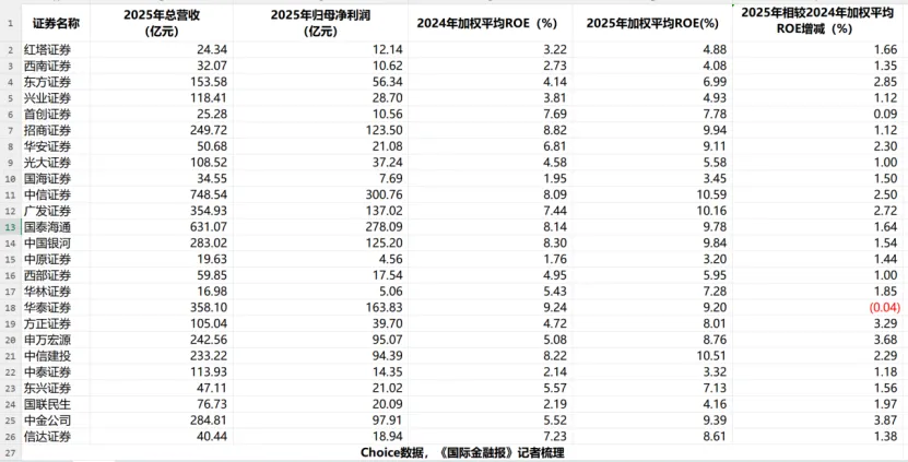 上海国家会计学院国有资本运营研究中心主任周赟在接受《国际金融报》记者采访时表示,2025年券商ROE普遍提升,与资本市场景气度回升密切相关,交易活跃度与风险偏好的改善共同驱动券商盈利能力提升。