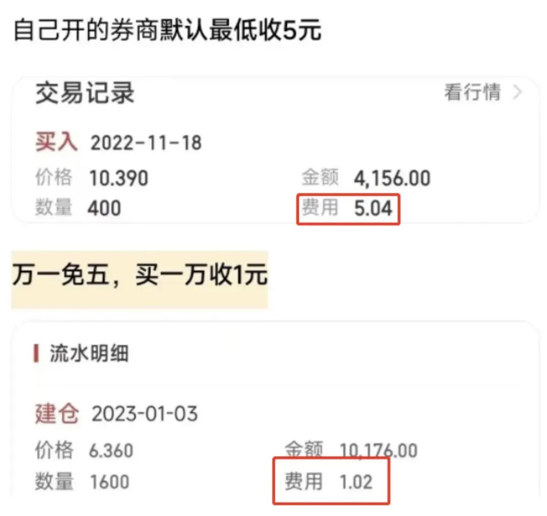 开过账户的人基本上都知道,证券帐户交易一次股票/基金默认都有最低5元的手续费要求。