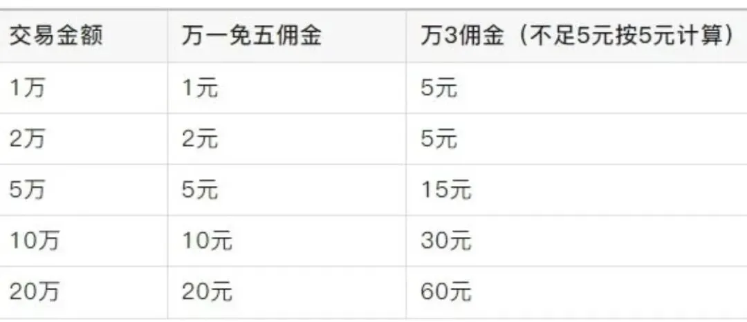 免五就是取消这个最低起步价5元的要求,只按照交易比例收取手续费,以万分之1来算,也就是熟悉的“万一免五”了。交易1000元或2000元,手续费只要0.1元和0.2元了,与原本的5元差异明显!!!这还只是一笔交易的情况,高频交易可以节约更多。