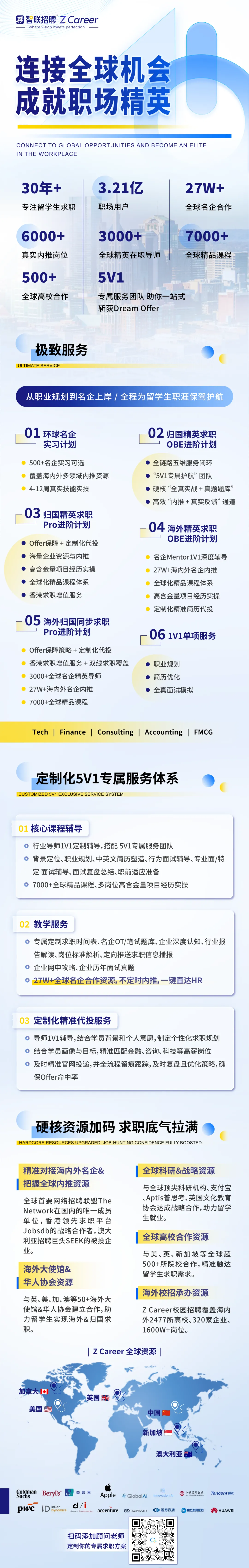Z Career也有学员通过提前早规划与准备,成功拿下金融圈金字塔尖的Offer,想冲刺顶尖名企实习或全职岗位的同学可以添加顾问老师,定制你的求职方案~