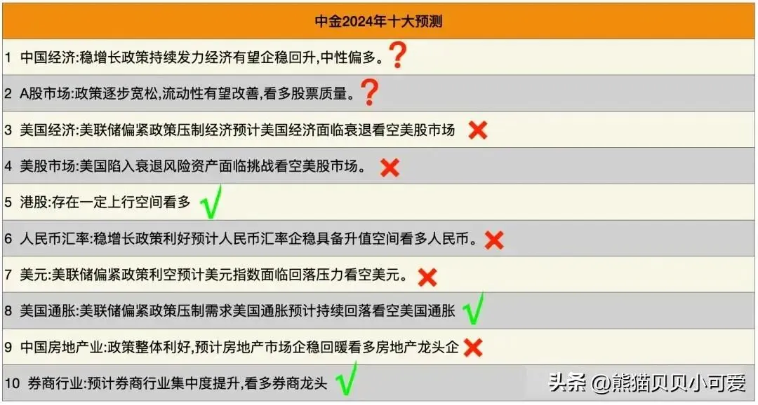 这次颜面扫地,影响很差,中金为了再次避免打脸,于是在2024年就没有直接发布十大预测了。