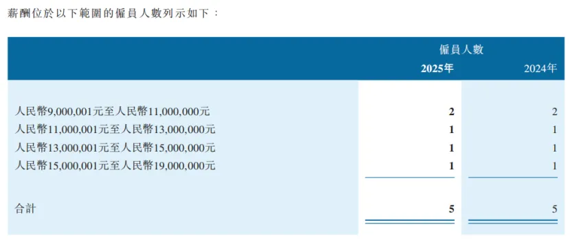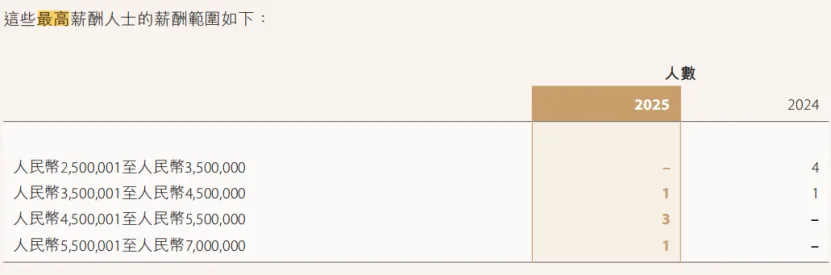 之前出过不少的高薪员工的中金公司,2025年及2024年薪酬最高的5个人中没有一位是公司的董事或监事。