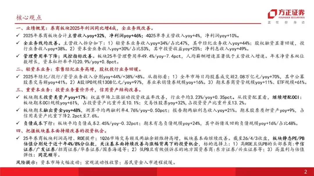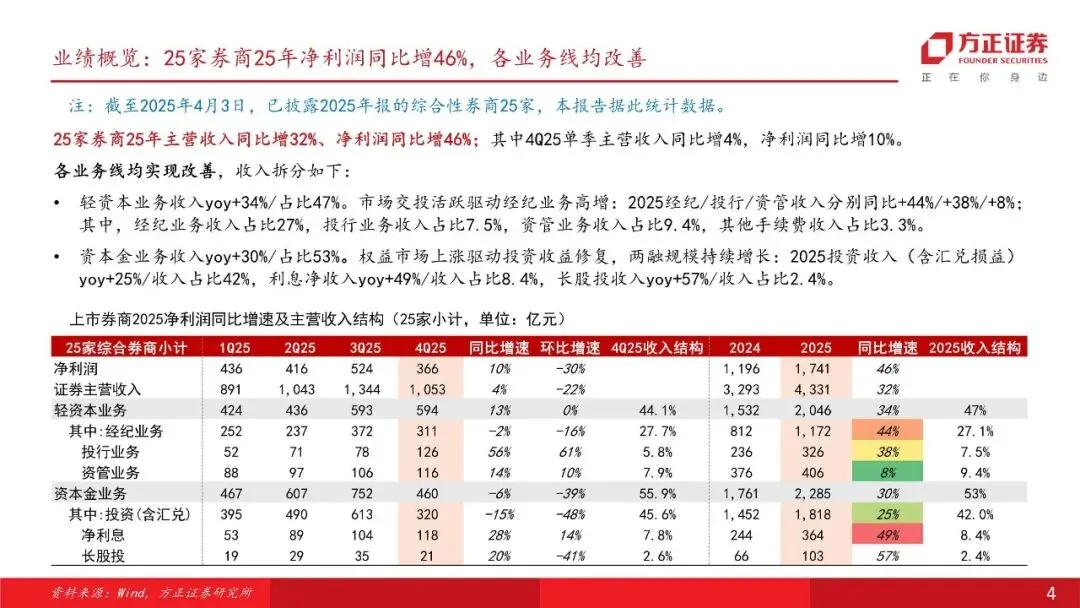 金融行业25家券商2025年报综述:净利润增4成,板块基本面持续改善-260406-方正证券-25页