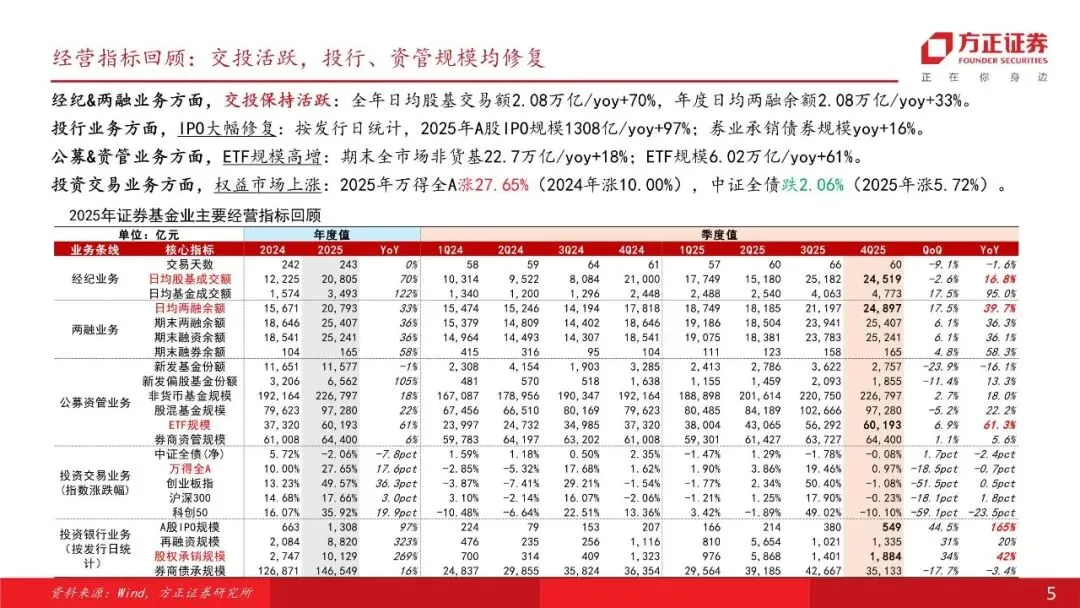 业绩概览:券商板块2025年利润同比增4成,全业务线改善。