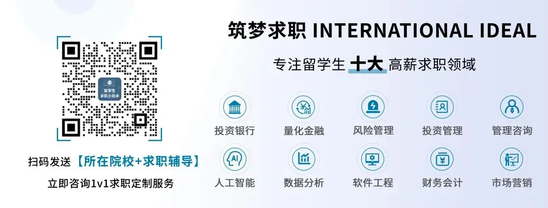 筑梦求职 INTERNATIONAL IDEAL(2014年成立并注册于美国),是北美最早成立的留学生求职咨询平台之一,目前覆盖全球留学生超过80万人。我们荣登“福布斯华人精英TOP100”以及“胡润百富创业领袖”榜单,至今已帮助 8000+ 学员获得来自Goldman Sachs、McKinsey、Deloitte、P&G、Google、Meta等名企的Offers。我们的服务包括:求职辅导、背景提升、名企内推、海外游学等;商务合作请联系:Coop@internationalideal.com