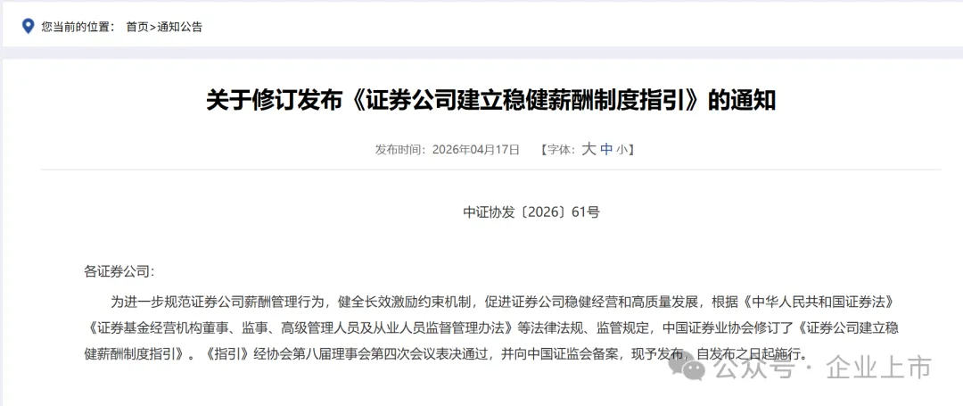 《证券公司建立稳健薪酬制度指引》是2026年4月17日刚发布的新规,简单来说,就是给证券行业的发钱方式立了一套更严、更长的规矩。