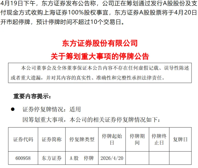 券商并购又一例,明起停牌推荐阅读➤荣耀人形机器人半马夺冠,蕴藏哪些投资机遇?概念股来了➤261家机构,“盯上”一家公司➤最高增长3773.77%!A股业绩利好来了➤50分26秒,超越人类!人形机器人历史性时刻