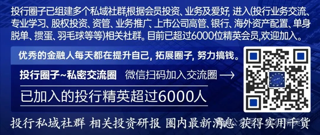 声明:本平台文章观点仅供参考,不构成任何投资建议。商务合作、投稿、约稿以及金融同仁资源对接、入群请添加管理员投行-涤生微信。
