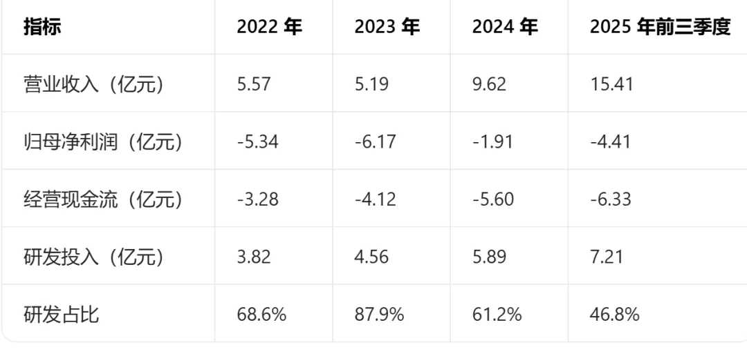 从数据能看出来:营收爆发式增长,2024年翻倍,2025年前三季度已超去年全年;亏损在收窄后又扩大,是因为AI产品迭代、产能扩张、研发加码,属于硬科技成长的典型特征;研发占比常年超60%,把钱全砸在技术上,这也是资本愿意给高估值的核心原因。