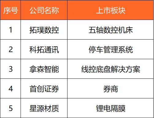 4、新股上市: