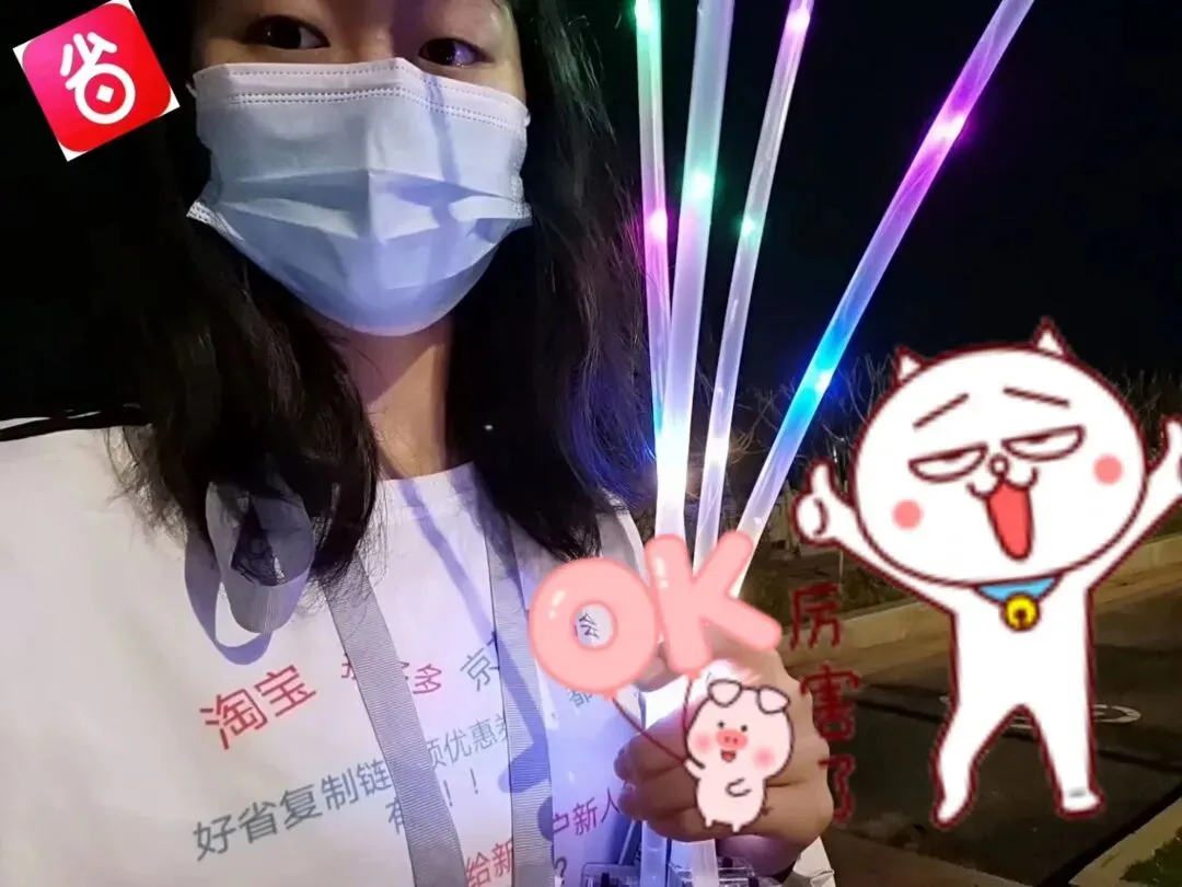 那时候纯素颜,不喜欢化妆也不会化妆,服装是自己手机贴图弄的,头饰是自己花钱买的,波波球也是自己自费买自己打气球自己缠彩灯的。