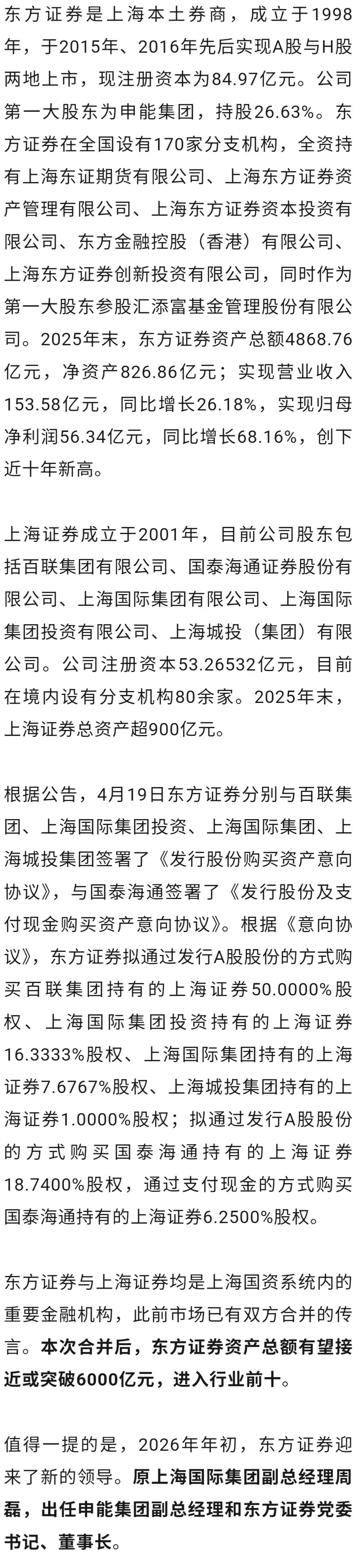 上海再现券商合并。