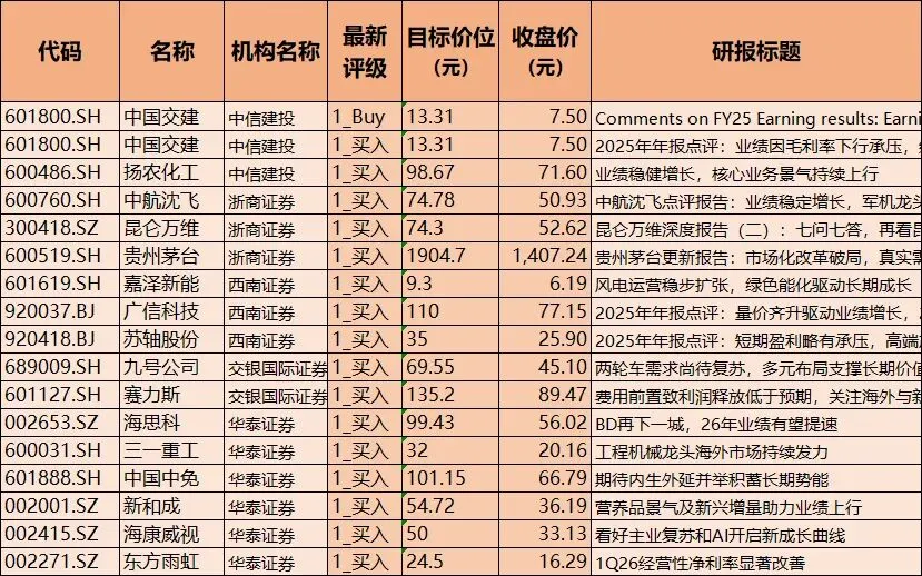 本月以来,根据各大券商研报汇总整理,有超过120只股票被券商给出高评级(含买入、强推、推荐),且给出的评级目标价大幅高于当前股价。
