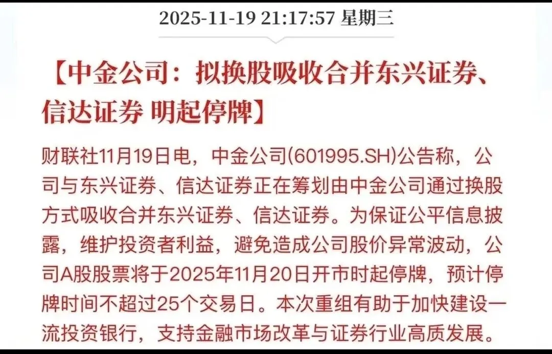 中金东兴信达正在合并路上