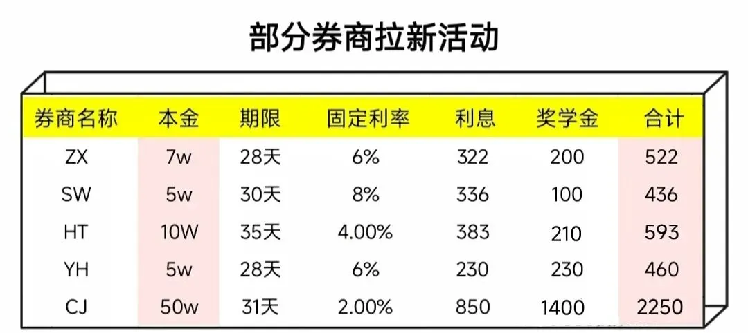 这三家拟合并券商目前都还挂着新客活动,利息给得都挺实在,趁合并前全部薅到手吧~