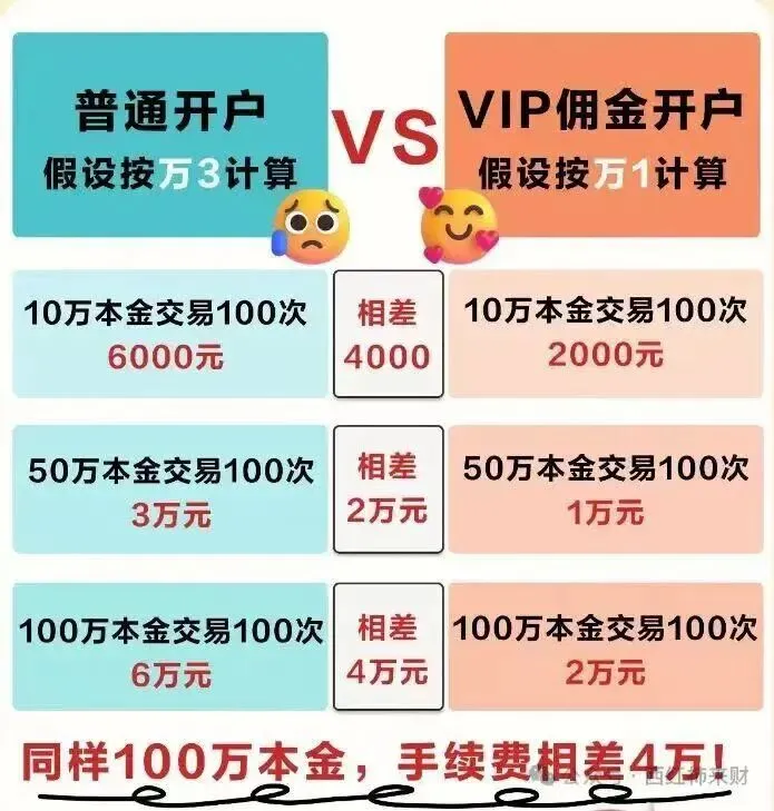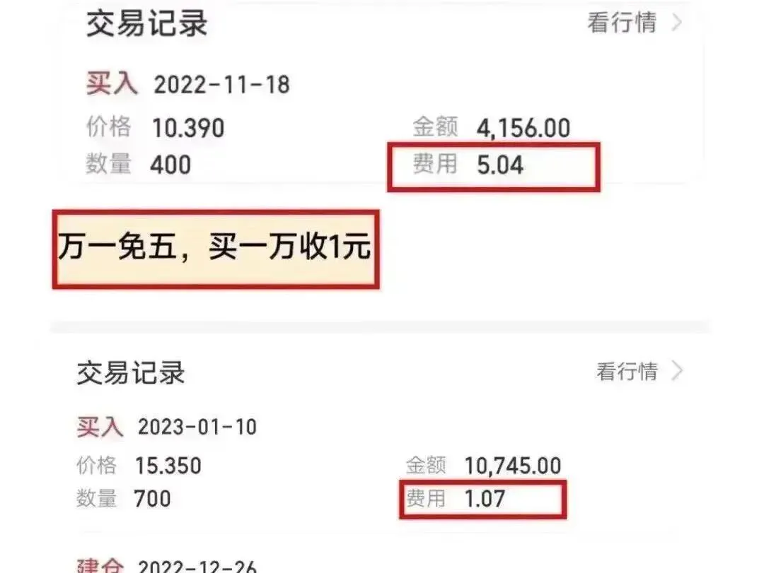 残酷的对比:在普通账户(万2.5,不免五)中,哪怕你只交易1000元,佣金也会被收取5元。一买一卖,成本高达10元。