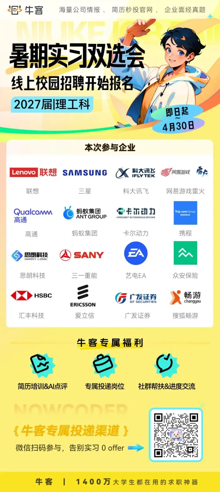银行券商 | 开源证券研究所2026暑期实习生招聘点击上方"校招攻略",选择"设为置顶or星标"第一时间获取各大名企校招内推资源校招攻略渠道直推01 内推享受优先筛选,进度可查百度 史上最大规模实习,超九成与AI相关渠道直推|顺丰集团 2026届管培生春招渠道内推 | 大参林医药 2026春招渠道内推|招银网络科技 2026届春招安克创新 2026届春招渠道直推|美团 26届春招+27届转正实习渠道直推|库洛游戏 2026届春招渠道直推|Shopee 2026届春招米哈游 2026届春招渠道直推|米哈游 全年实习生招聘项目渠道内推 | 高途 2026春季校招渠道内推 | 迅雷 2026届春招渠道直推|TCL华星2026届春招渠道直推|拼多多2027届研发实习生招聘渠道直推|9377游戏 2026届春招渠道直推|友塔游戏 2026春季校园招聘渠道直推|好未来 2026春季校园招聘渠道直推|作业帮 2026春季校园招聘渠道直推|凡岛 2026春季校园招聘渠道内推|康冠科技 2026届春季校园招聘帆软 2026届春招内推 <<点击上方文字即可跳转 >>