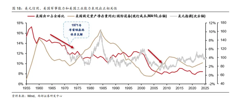 第三波,发生在2025年。特朗普政府重返白宫,《大而美法案》大幅扩大财政赤字,长端利率快速上行倒逼美联储提前降息。当货币政策开始服务于财政需求,美联储的独立性受到质疑,美元作为"规则锚"的公信力随之松动。