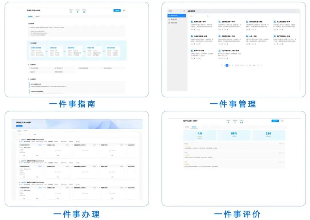▶︎以人为本业务敏捷:聚合全场景“一件事”服务入口,提供从办事指南、在线办理、进度管理到服务评价的全流程闭环,以用户为中心,实现业务办理高效透明、体验敏捷优化。