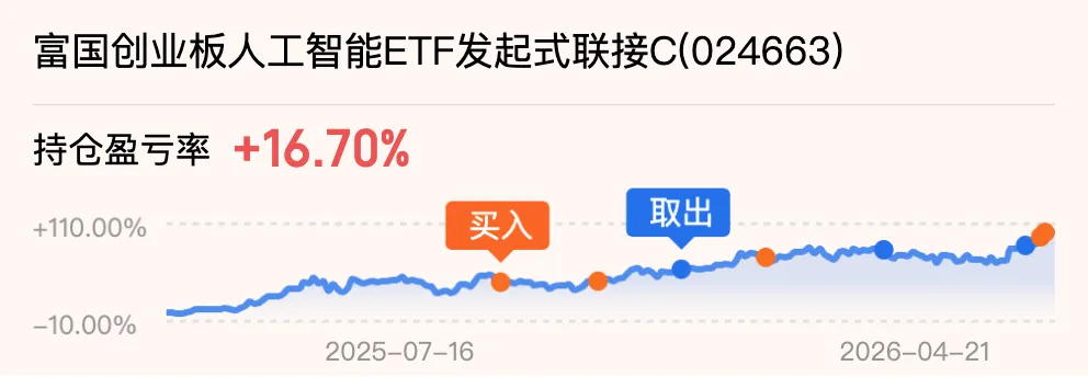 2)今天盘中,中际旭创再次拉升,其实我算过股价到900,就可以到一万亿,而机构的评级基本还是买入,增持,目标价都定到1100以上,按马斯克的AI5的需求来说,现在全球的算力总和都不能满足他,不管怎样,半信半疑也好,市场的资金还是流向这里,那么手里持有的不慌,是否加仓还是个人选择,我选择继续小加一笔1000元$富国创业板人工智能ETF发起式联接C(024663)$ 。
