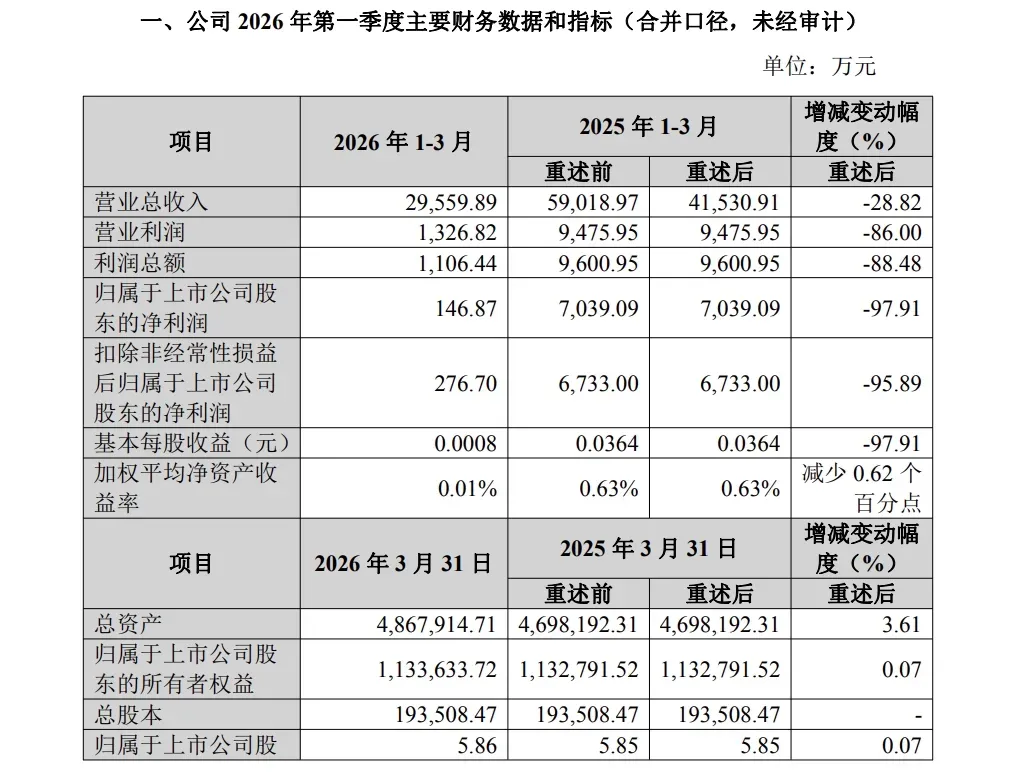 财报数据显示,2025年末,东方证券资产总额4868.76亿元,较上年末增长16.55%,净资产826.86亿元。经营业绩方面,公司2025年实现营业收入153.58亿元,同比增长26.18%;实现归母净利润56.34亿元,同比增长68.16%。