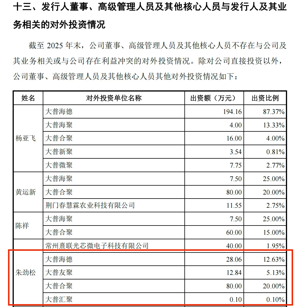 招股书显示,朱劲松通过四个员工持股平台(大普海德、大普友聚、大普合聚、大普汇聚)合计出资约121万元,对应持有约1060.9万股。截至4月22日收盘,该部分市值近24亿元。