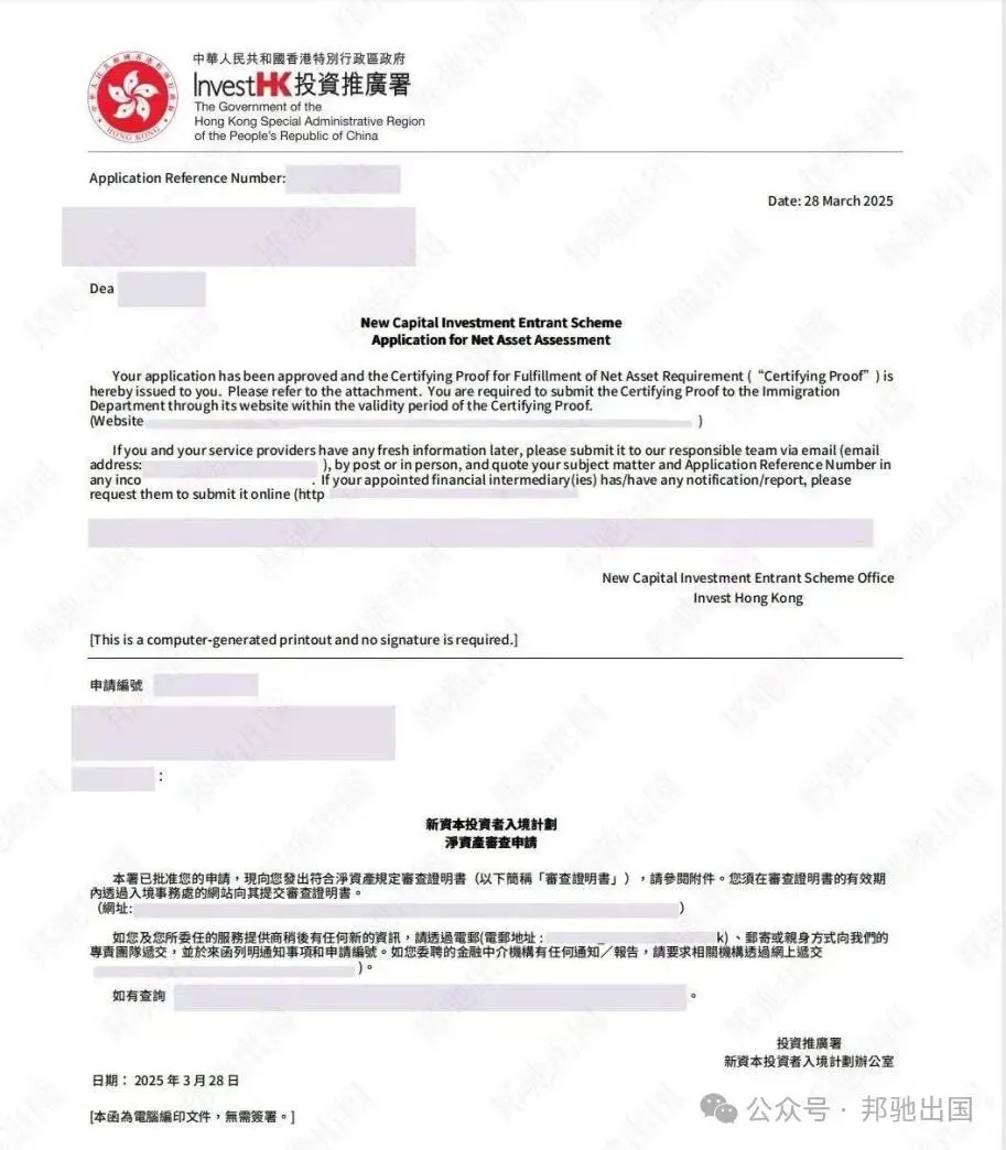 (邦驰出国香港投资移民客户通过净资产审查申请)