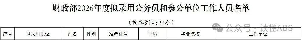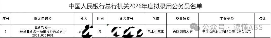 7名券商员工上岸财政部/人行公务员来源:读懂ABS近日,财政部,人行总行机关公布2026年公务员考试拟录用名单,7名券商员工成功上岸。注:因为公众号平台更改了推送规则,如果不想错过金卓讯的文章,记得将我们设为“星标”,这样每次新文章推送才会第一时间出现在您的订阅列表里。人生总有错过,长按识别文末二维码,下载金卓讯app,解锁更多精彩内容!