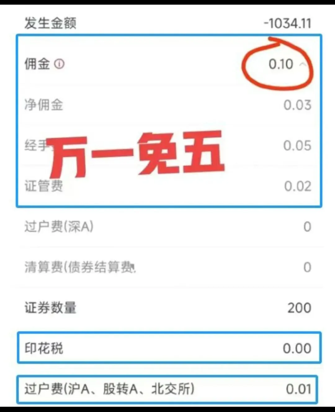 不管你佣金费率多低,单笔交易算出来手续费不足5元,一律统一按5元扣除。