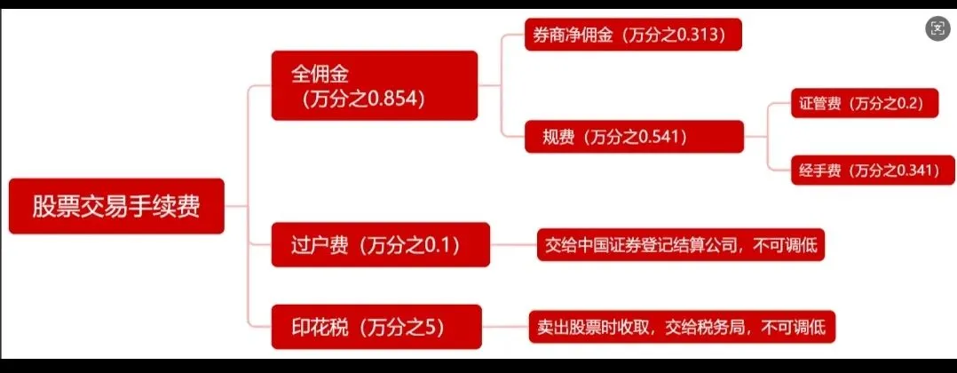 1. 证管费:成交金额万分之0.2,买卖双向收取,由交易所代收上交证监会;