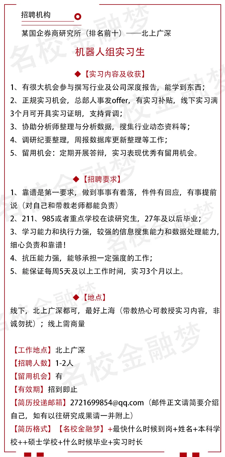 » (04/23)上海今日实习信息|某国企券商研究所(排名前十)