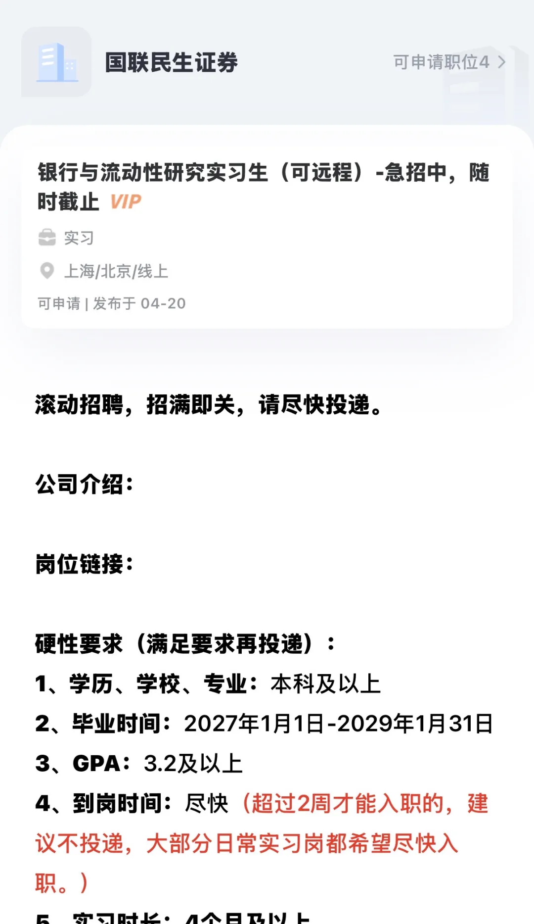 👨🎓大二大三/研一新生:想在毕业前积累经验,通过实习直接拿到Return Offer?春招实习岗位招满即止,必须尽快投递。